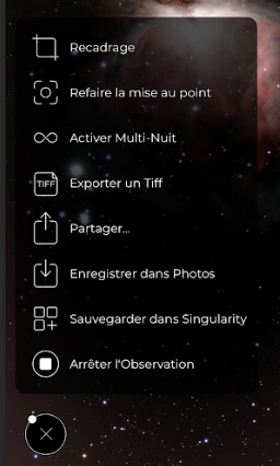 L'écran d'observation adoptera la nouvelle interface (avec l'accès aux options via le bouton "+" et une barre d'empilement revue et améliorée).